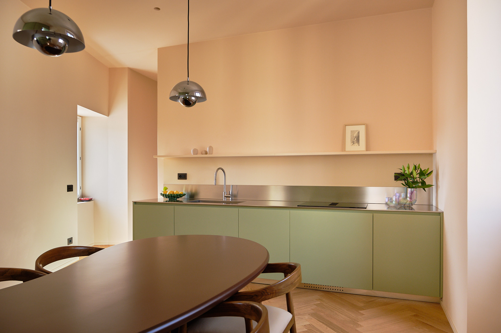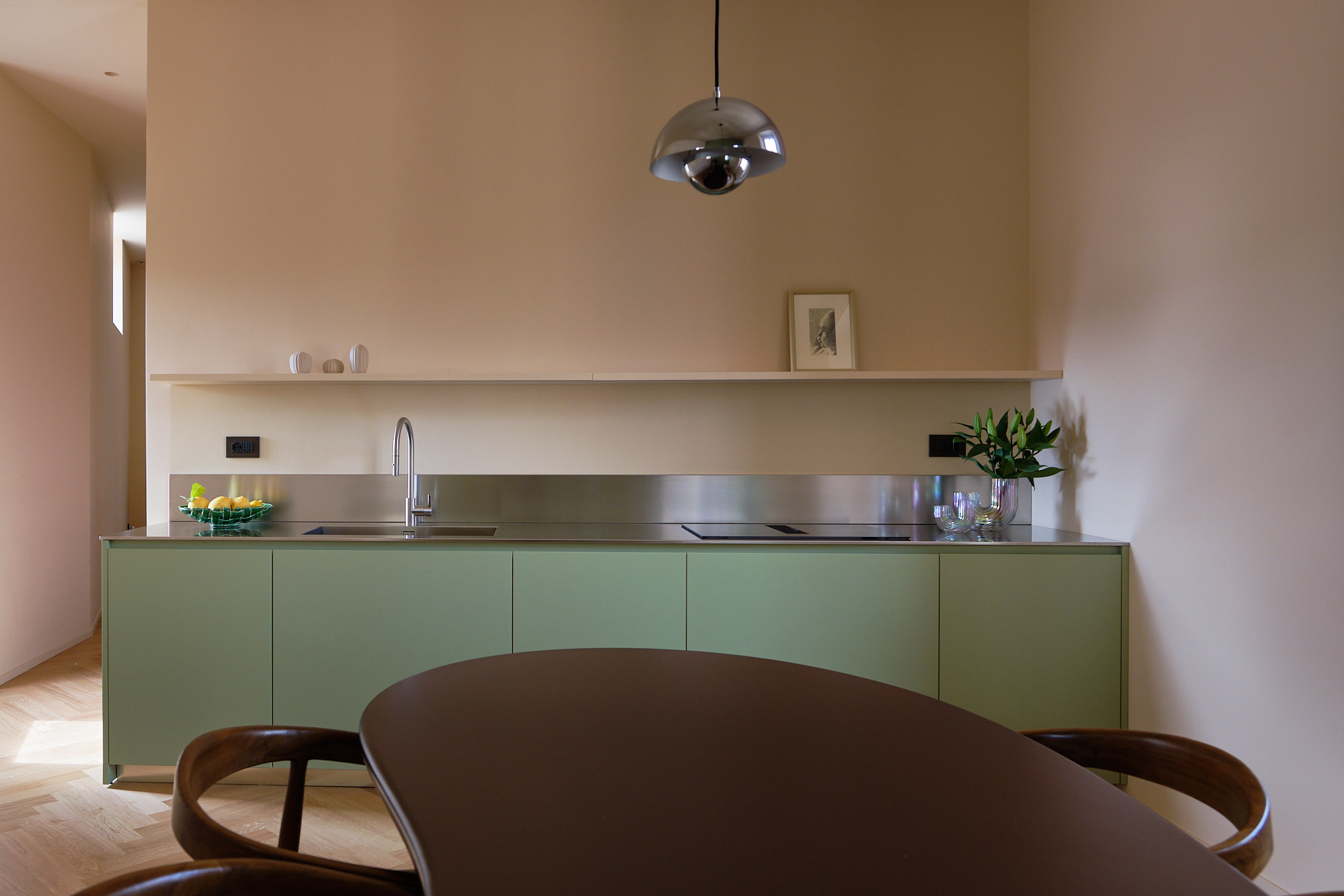 È una cucina che parla di equilibrio e di emozioni: la razionalità dell’architetto incontra la calda intimità della casa, trasformando ogni gesto in un’esperienza di bellezza e funzionalità.