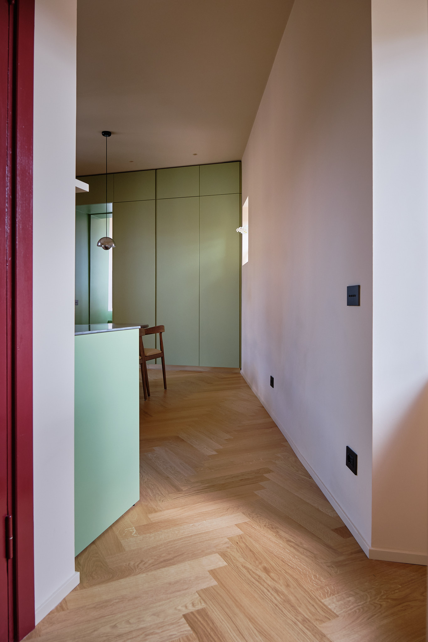 In questa cucina si respira l’essenza di un’architettura intima e raffinata. Le linee pulite si fondono con i toni caldi dello spazio, creando un’atmosfera accogliente e senza tempo.